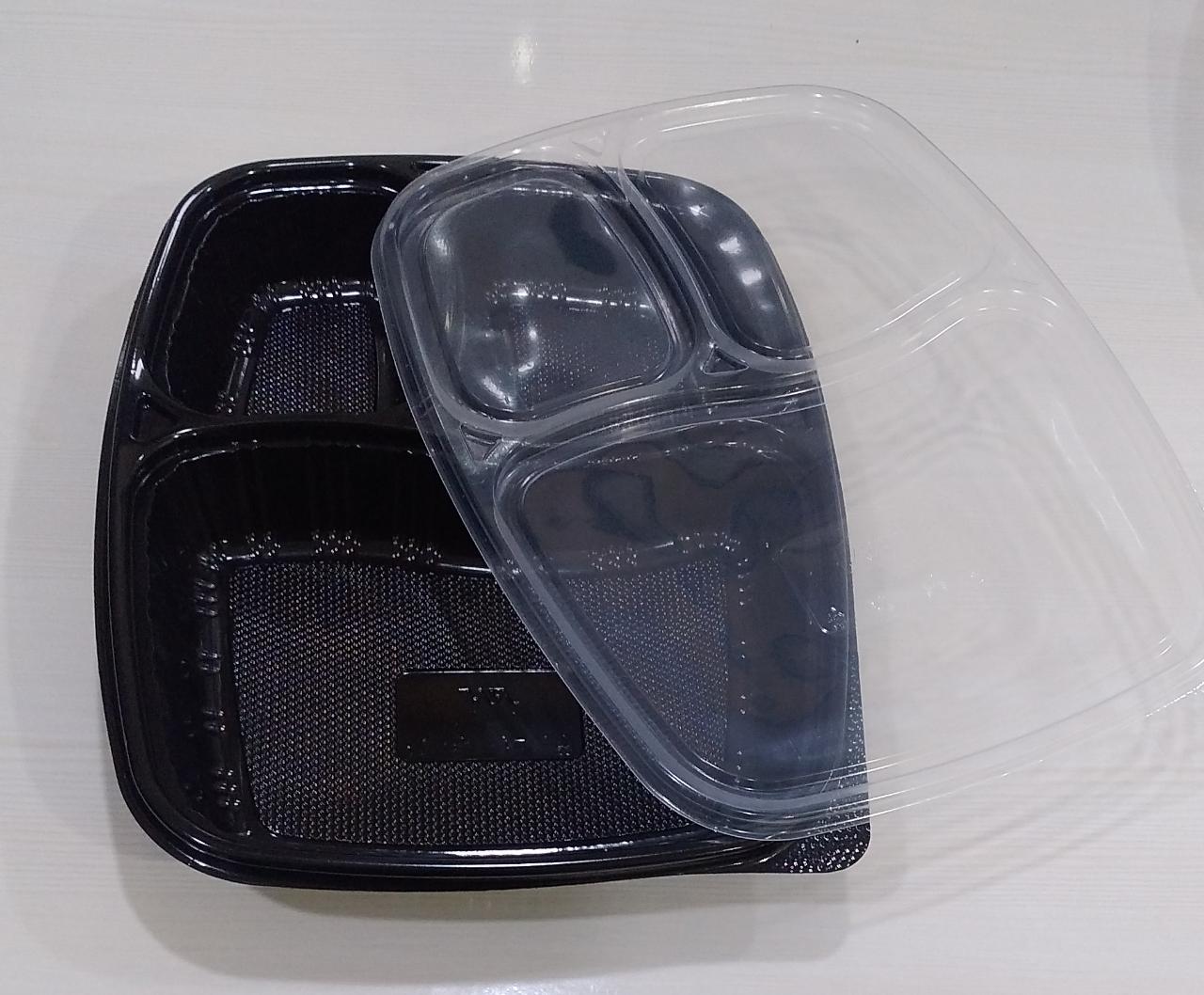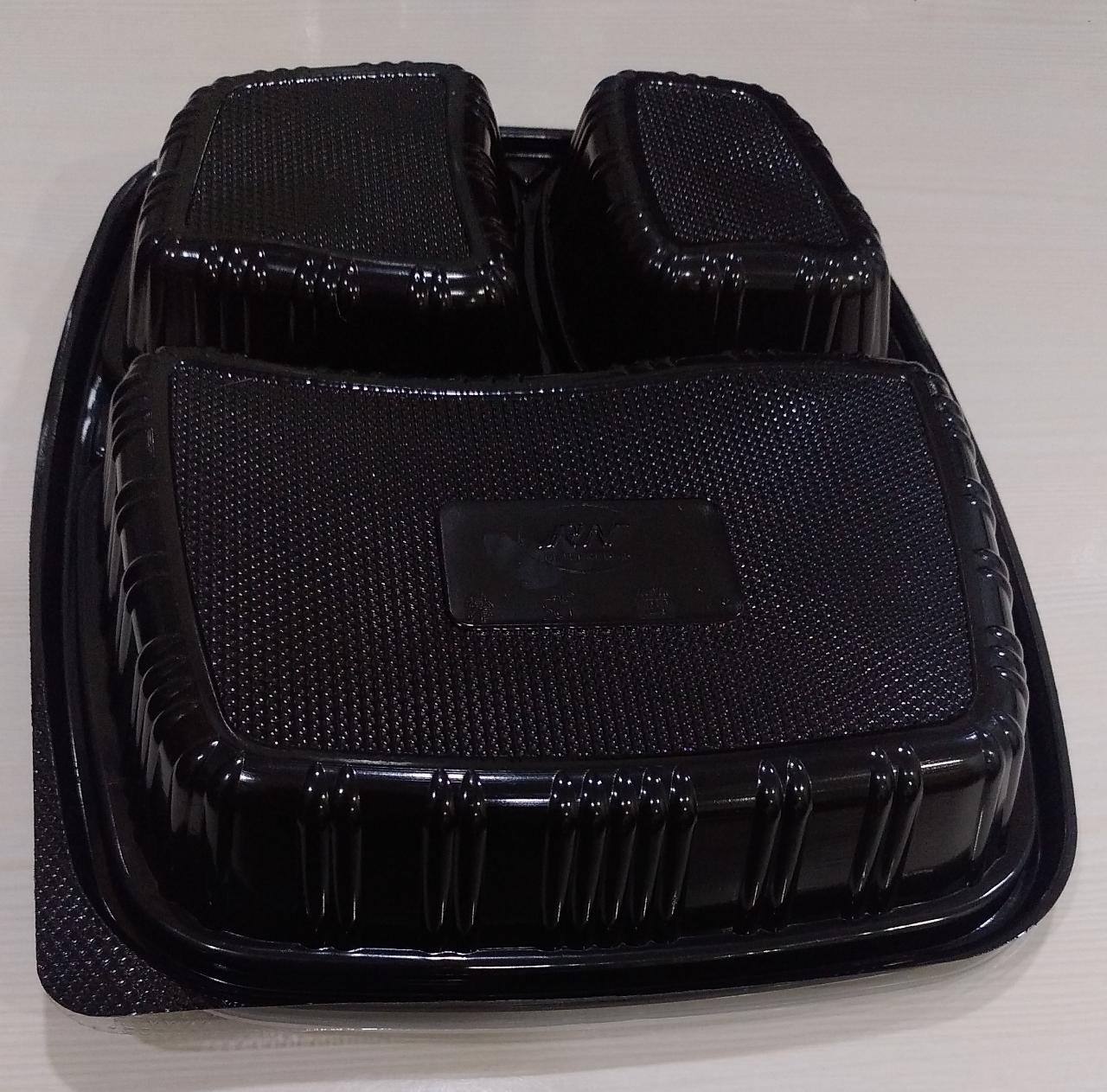 ⏳TSL⏰LUNCH TRAY-PARAS-BLACK-▦-3CP-WITH LID-25C-1-15-32